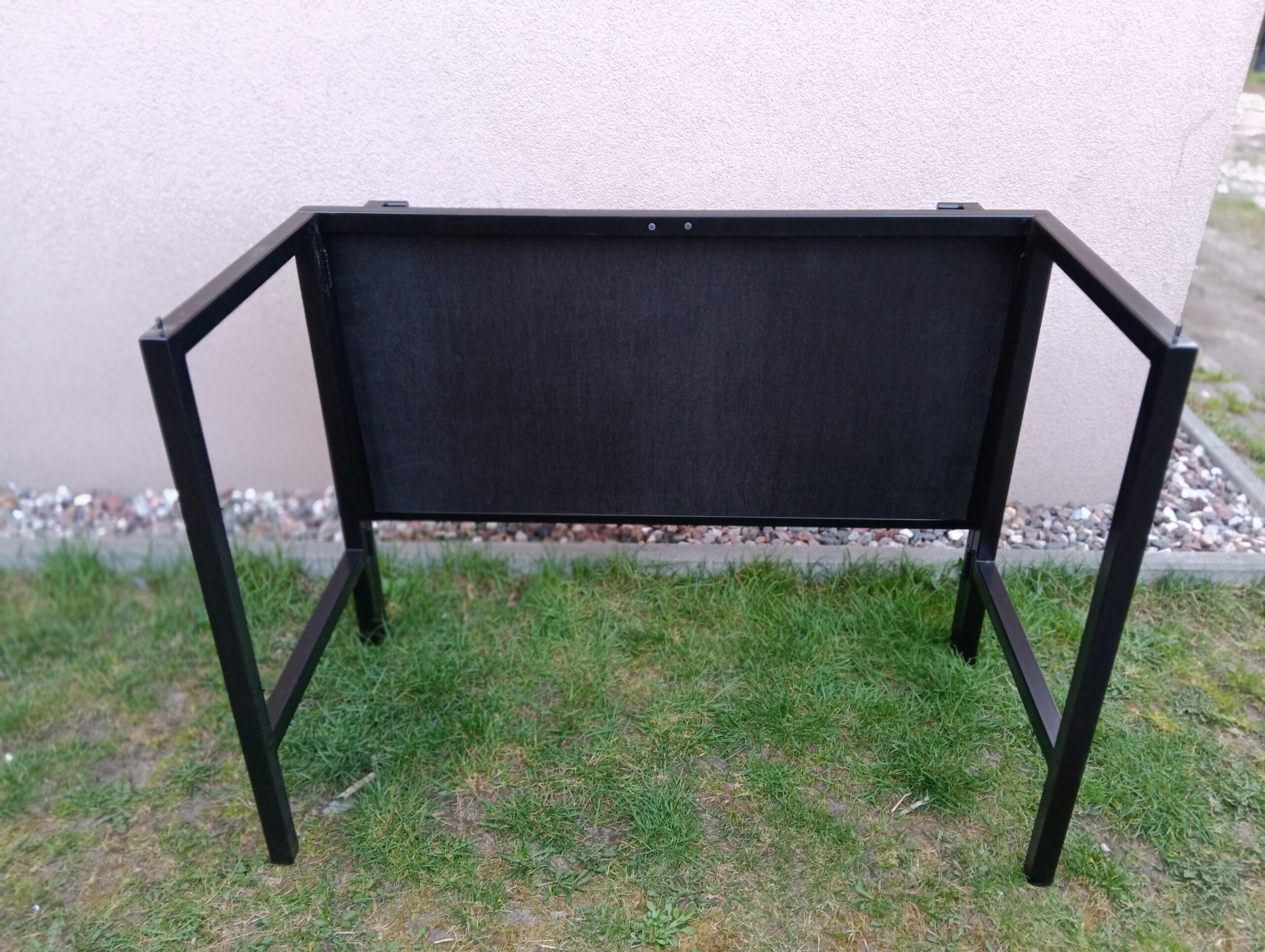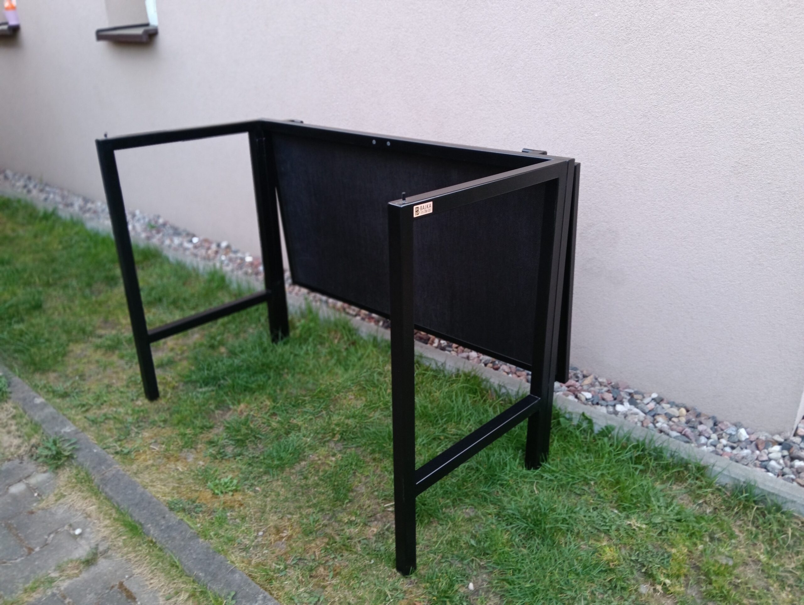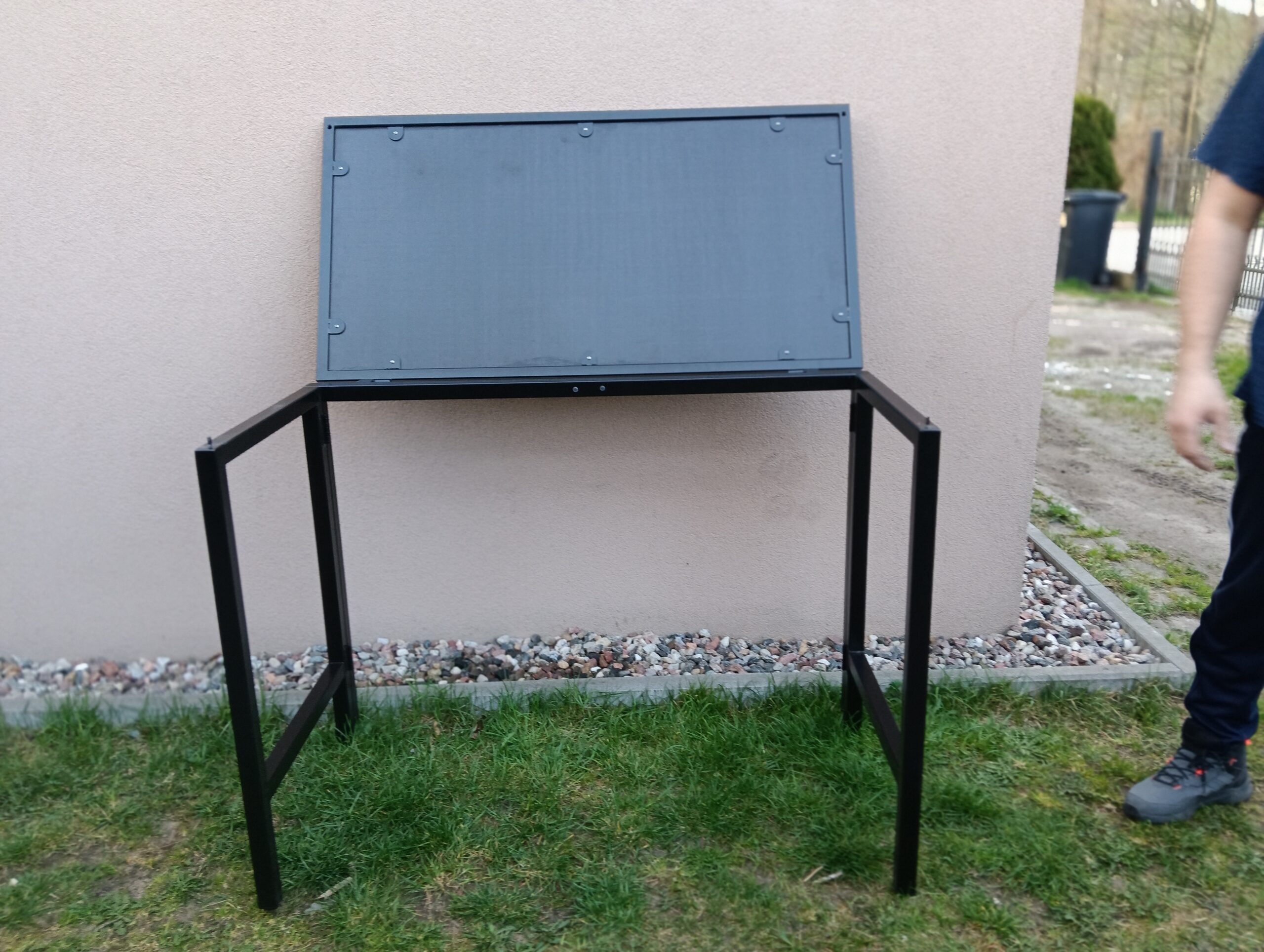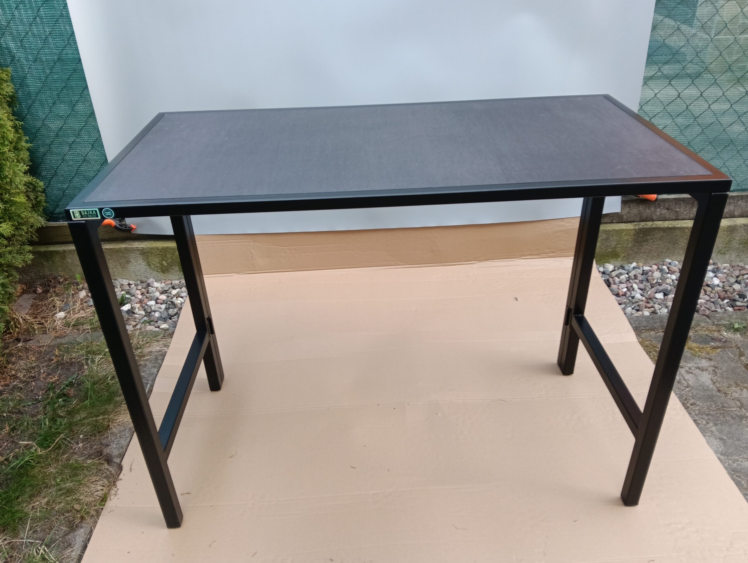 Solidny blat wykonany z spawanej ramy i wpuszczonej antypoślizgowej sklejki o grubości 18 mm gwarantuje nie tylko trwałość, ale także bezpieczeństwo użytkowania. Czarna powłoka malowana proszkowo zapewnia estetyczny wygląd i odporność na warunki atmosferyczne (istnieje możliwość wyboru innego koloru malowania, aby dopasować stół do Twoich preferencji).